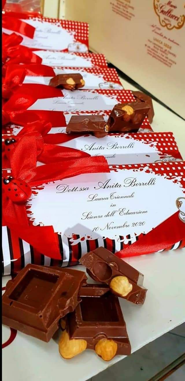 Scegli tra le deliziose bomboniere da 110 e lode, create con cura e maestria dal team della Fabbrica di cioccolato di Mario Gallucci.